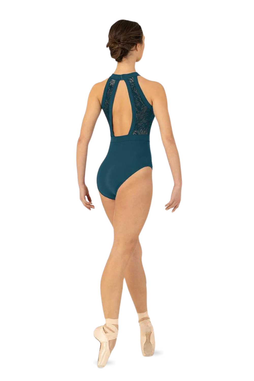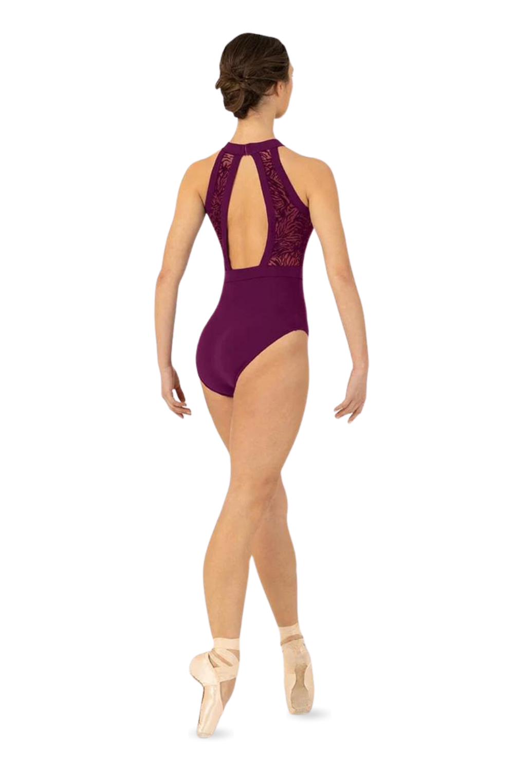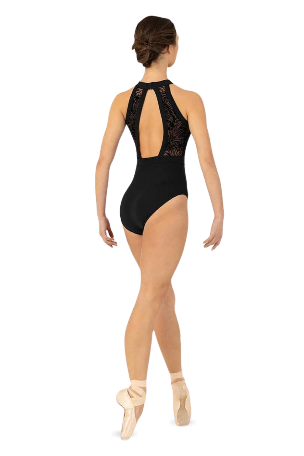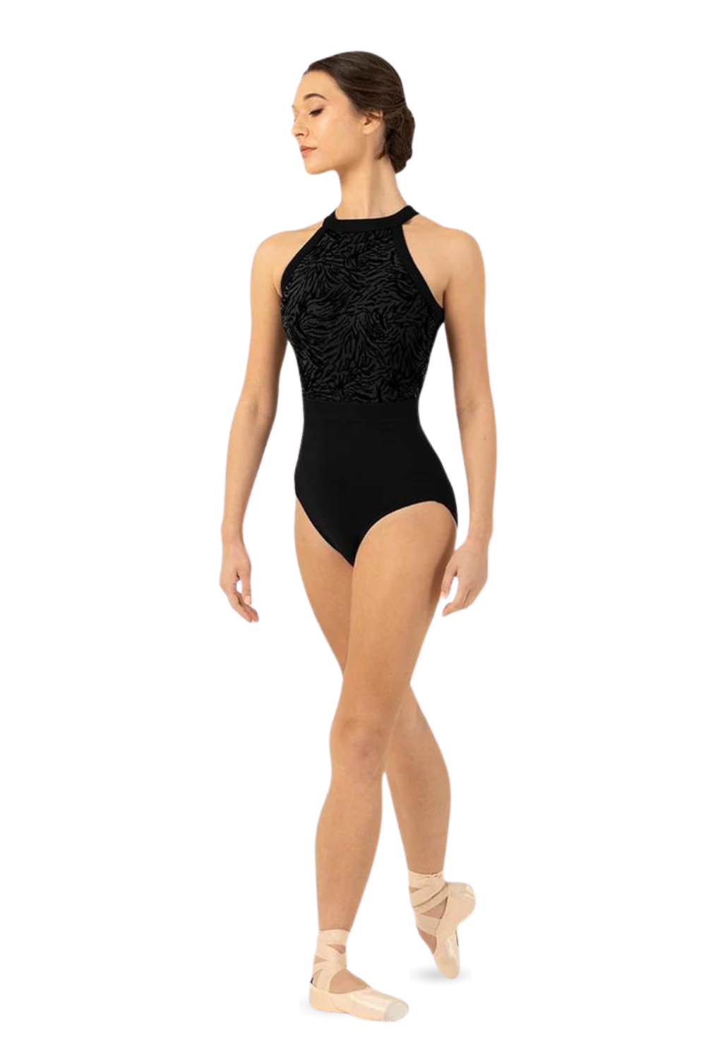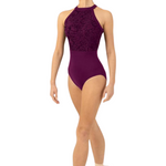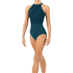 Our Ladies Kayla Halterneck Leotard features a flocked mesh bodice with an open back and halter neckline. Part of our Holiday Collection; offering a touch of high winter luxe. Featuring elegant shapes fashioned in soft flocked mesh in a trio of jewelled tones.