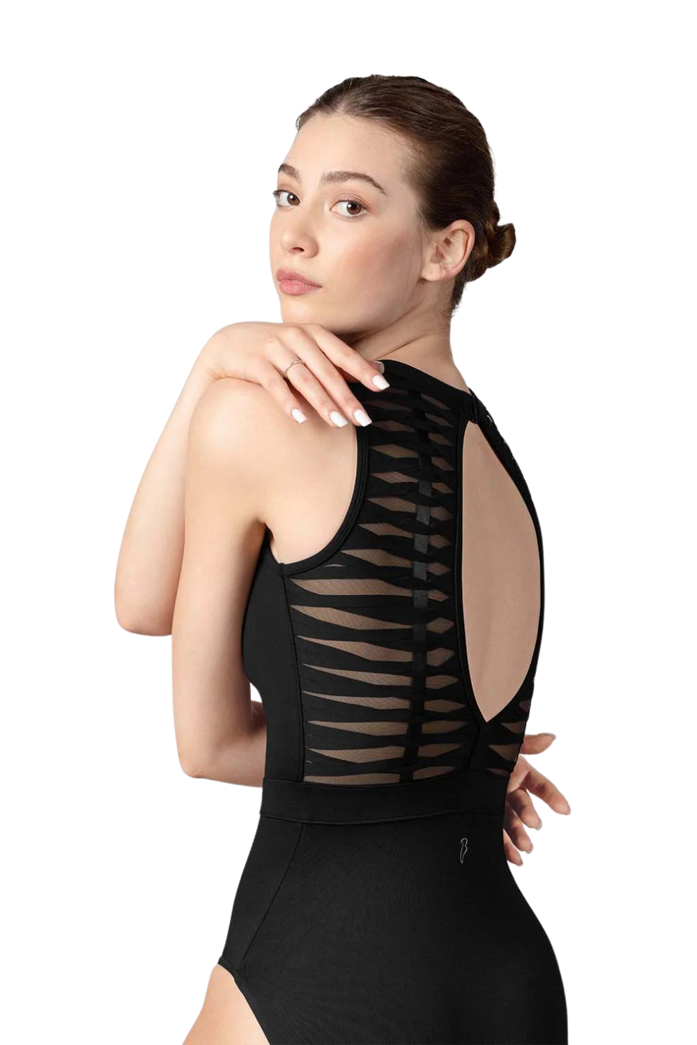 Our Ladies Leony Open Back Leotard features an elegant open back with intricate twist mesh panels, and a high neck with sweetheart detail. Our Bloch Entwined Collection features a contemporary twist on classic silhouettes. Beautifully fashioned with intricate woven twist details and soft mesh accents for a touch of elegance. Crafted from our signature performance fabric that moves effortlessly with you and available in classic black, grey and a striking peacock blue.