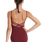 The V-Neck Camisole Leotard is an effortless essential. This leo can be worn traditionally with tights or under wrap skirts, leggings and joggers. Styling options are limitless. Features a V-neck and bold, criss-crossed lower back. Available in assorted colors to satisfy all of your style preferences.