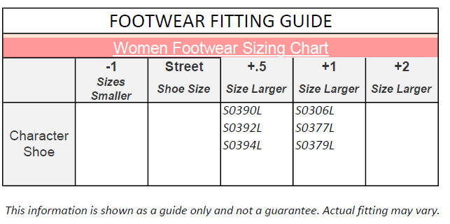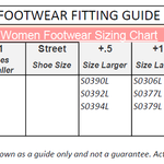 • Start with 1/2 size up from street shoe.