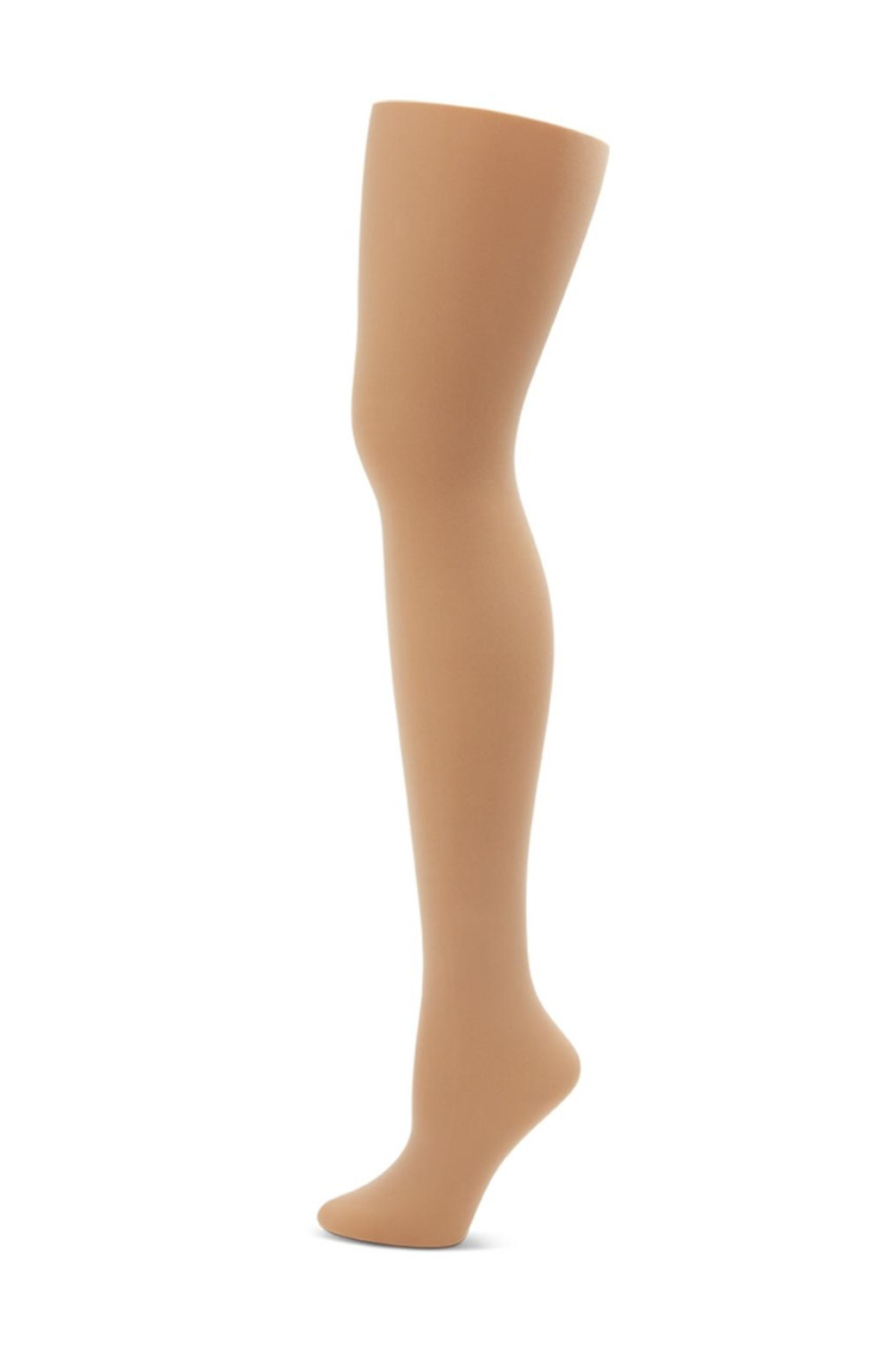 Dance effortlessly in the Studio Basics Footed Tight. Features a self knit waistband that holds the tight securely in place without the discomfort of elastic. Made of a nylon and spandex blend that is resilient. This tight is seamless to create a sleek profile for layering dancewear.