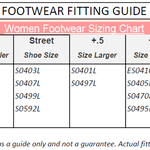 • Same as street shoe.
