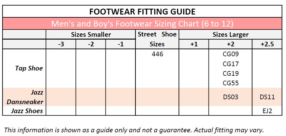 • Men go 2.5 sizes up from street shoe size.