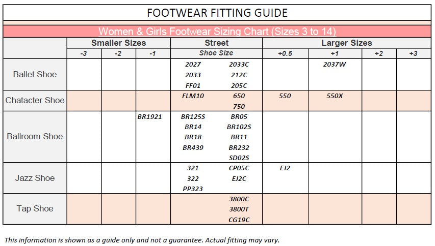 • Women begin with 1 full size larger than street shoe.