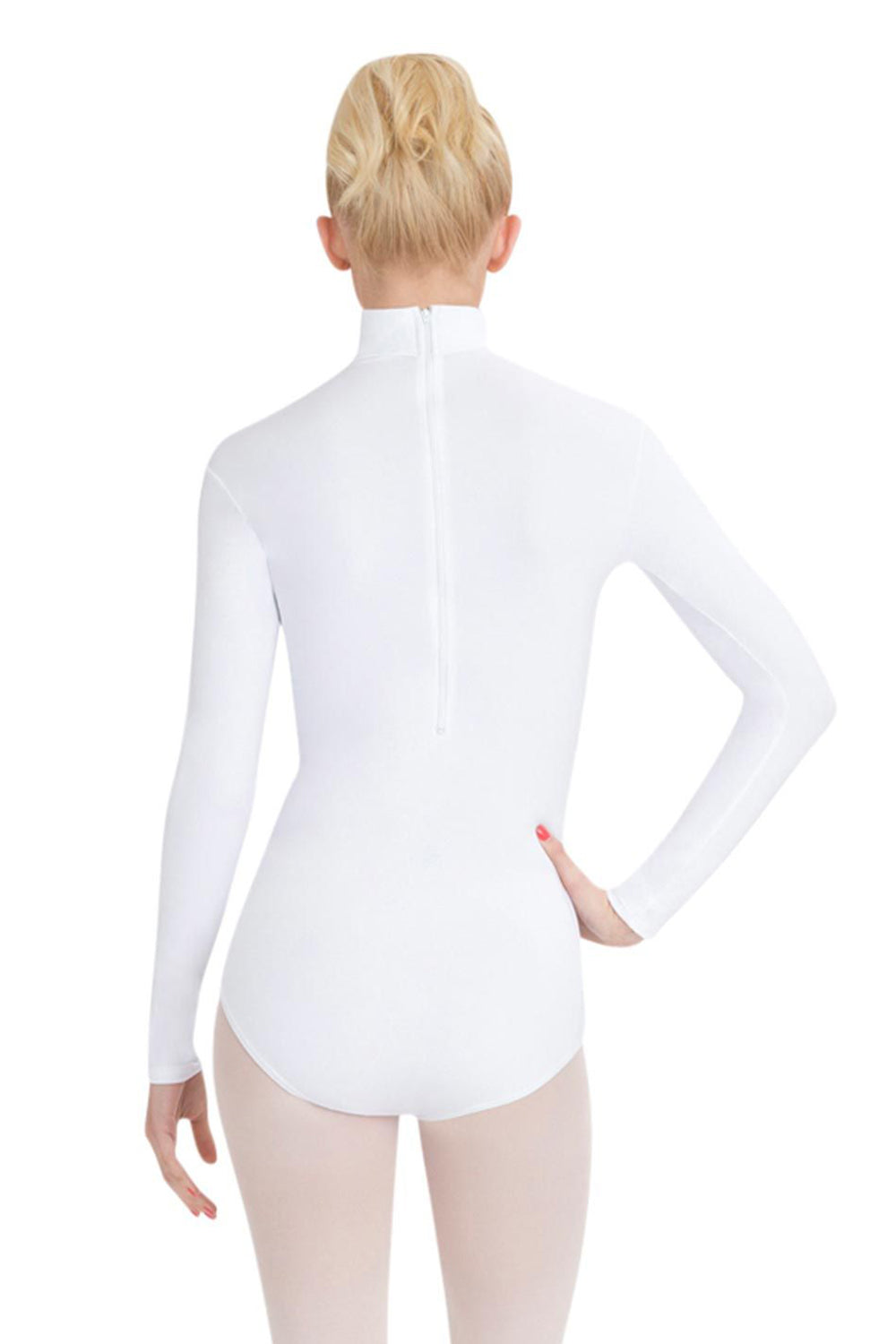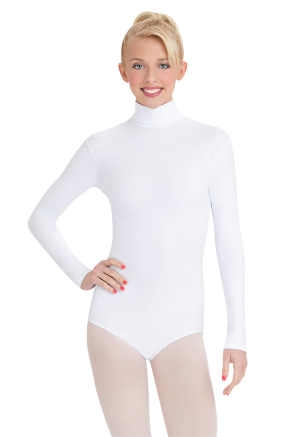 Coco Chanel knew best when she said, "Modesty is the highest elegance." This reigns true when dancing in the Turtleneck Long Sleeve Leotard. This leotard features a modest turtleneck and zippered back. Made of a nylon and spandex blend that is soft and resilient. Long sleeves will keep you warm on cold studio days.