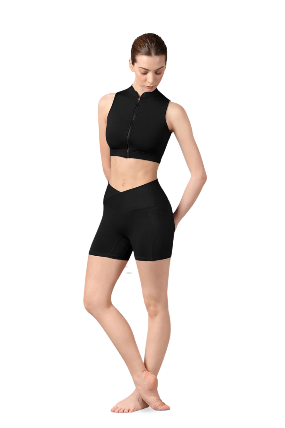Our Ladies Harrieta V Front Shorts feature a wide V front waistband, convenient dual side pockets in a functional short length. Pair with our Alix Zip Front Crop Top or Catherine Camisole Crop Top for your perfect dancewear look.