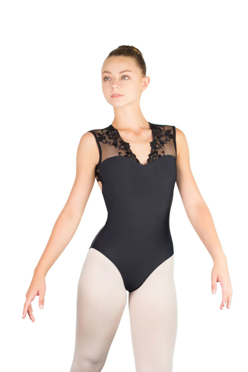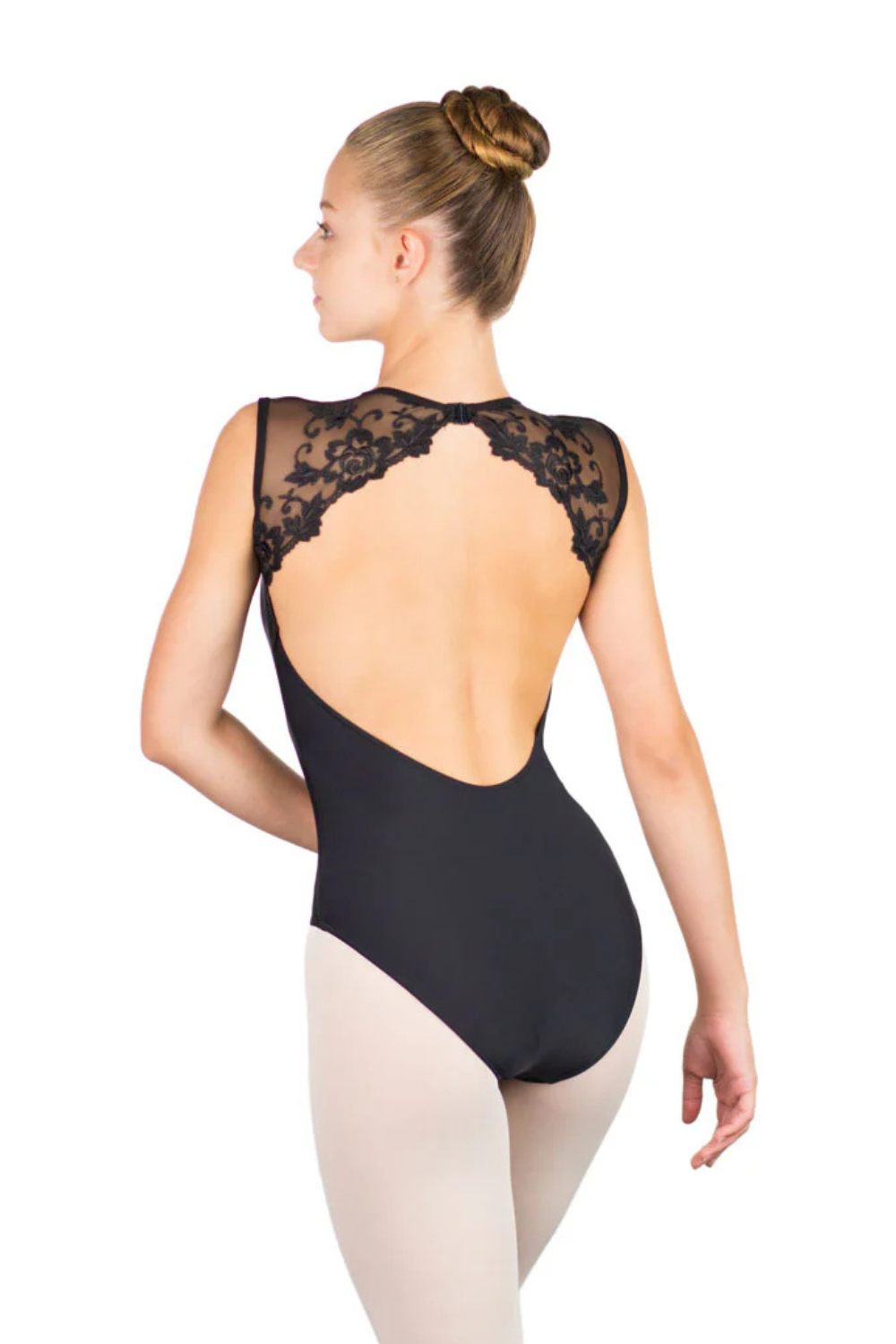 Featuring a breathtaking open back accented by shoulders of exquisite, hand-cut Austrian stretch lace, the Emmeline leotard from Ballet Rosa's Autriche Collection is sure to become your new favorite.