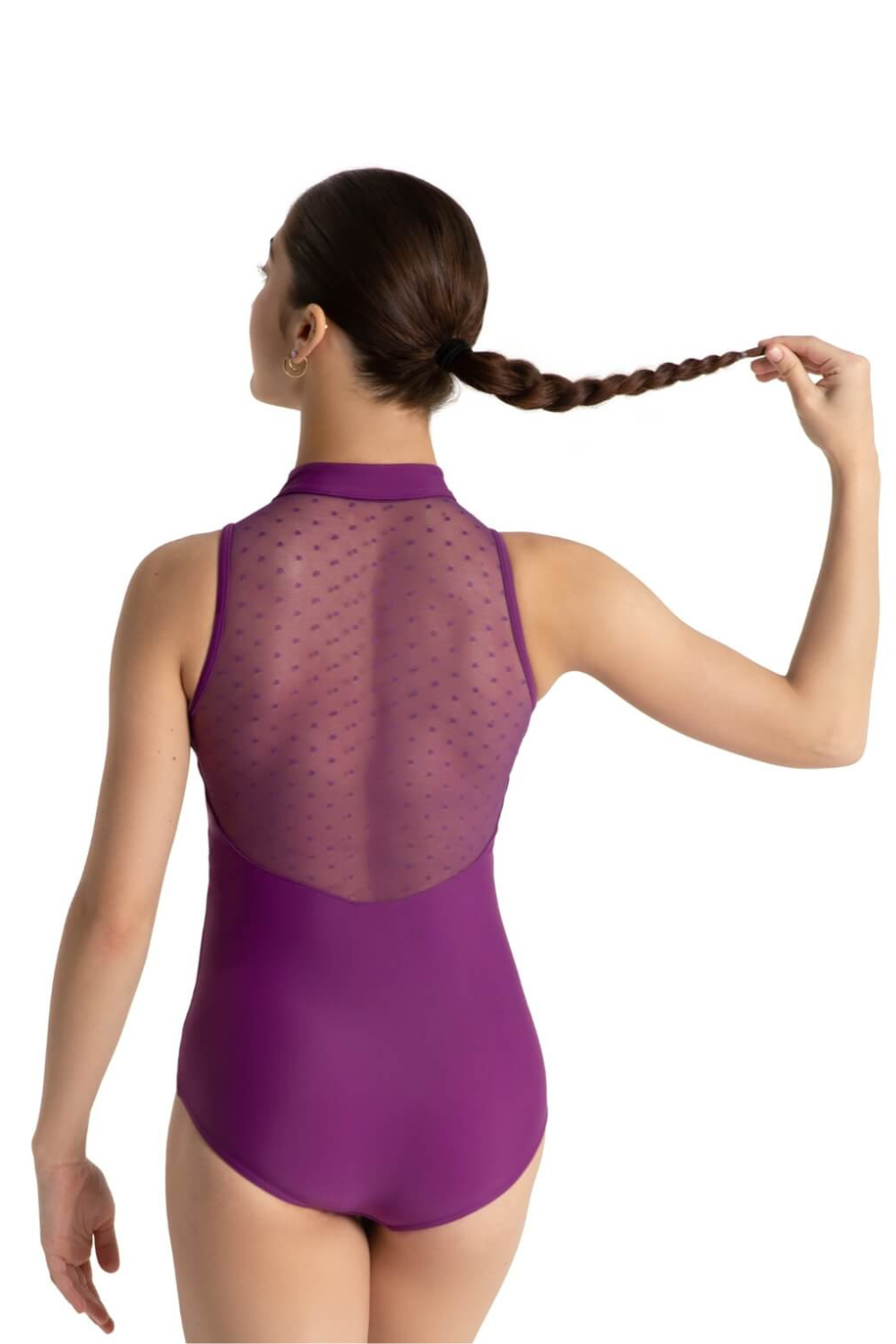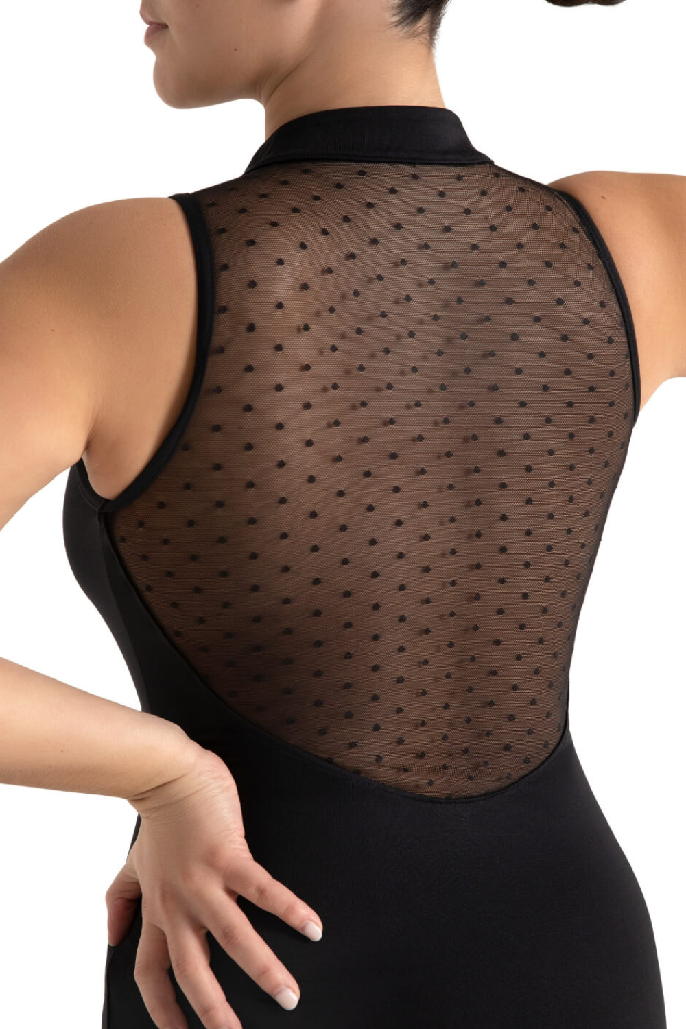 Spot On Zip Front Leotard is perfect for every style of dance. This unique leotard boasts a hidden front zipper for easy dressing while remaining sleek and flattering. High front neckline elongates the torso for a clean look. Breathable mesh, polka dot back for a fun added detail. Pair with Spot On Pull-on Skirt or Bike Shorts to complete the look! Available in adult and child sizes.