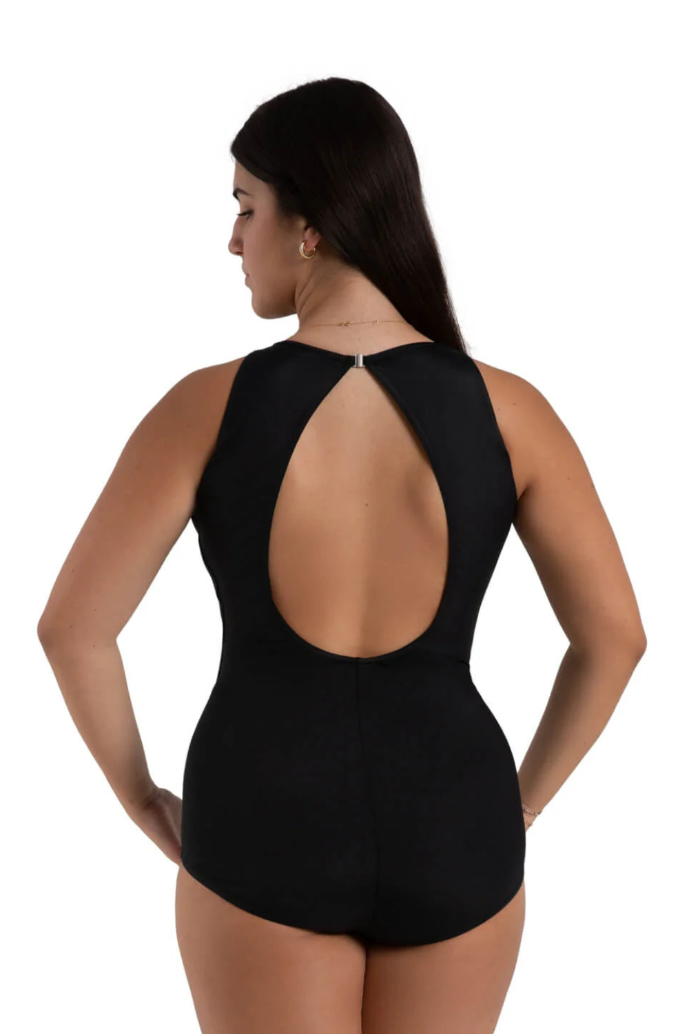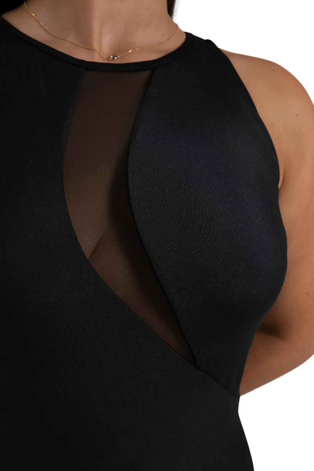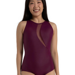Step into the elegance of the Curved Rhythm collection with the Agusta Leotard. This high-neck tank leotard showcases an eye-catching asymmetrical mesh front detail, blending Nylon and Spandex for unmatched comfort and flexibility. The dyed-to-match mesh, made of a Nylon and Spandex blend, adds a sophisticated touch, featuring a keyhole back with a clasp at the back of the neck. Fully front-lined in all colors and featuring a ballet leg line, the Agusta Leotard is designed to move beautifully with every graceful curve, embodying the fluidity and rhythm of dance. Available in adult sizes only.