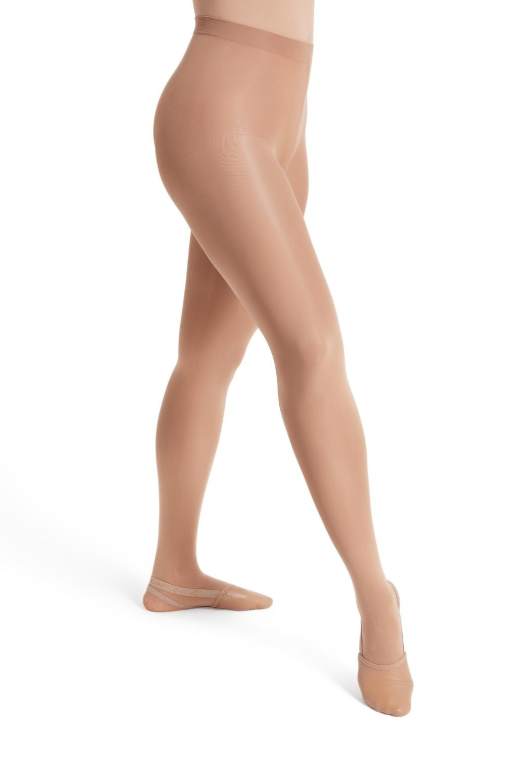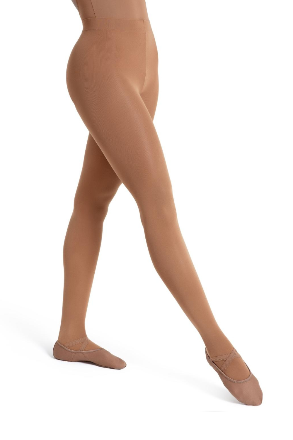 Feel truly unstoppable in the Ultra Soft™ Transition® Tight. Our best-selling tight features transition openings for easy alternation. Leave the tights down with dance shoes or roll them up to dance barefoot. The self knit waistband holds the tight securely in place without the discomfort of elastic. Available in 18 shades to match every dancer's style and mood.