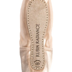 Made on the original Rubin last with the same box shape, Rubin Radiance flaunts dazzling new features. A narrower heel cut allows for a sleeker fit, while a suede tip at the platform provides improved traction and durability. Rubin Radiance features a 3/4 shank, and double-lined satin gives the pointe shoe more structure. Like the original Rubin, Rubin Radiance's low crown, pre-arched construction, wide platform and slightly tapered box combine to suit a variety of foot shapes.