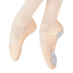 Arabesque like the pros in the Leather Juliet Ballet Shoe. The unique sculpted arch improves pointing and flexing with ease. Features durable leather and pre-attached criss-cross elastics for a secure fit. This ballet slipper is a first rate choice for dancers with narrow feet. Snug yet flexible for extra control on stage.