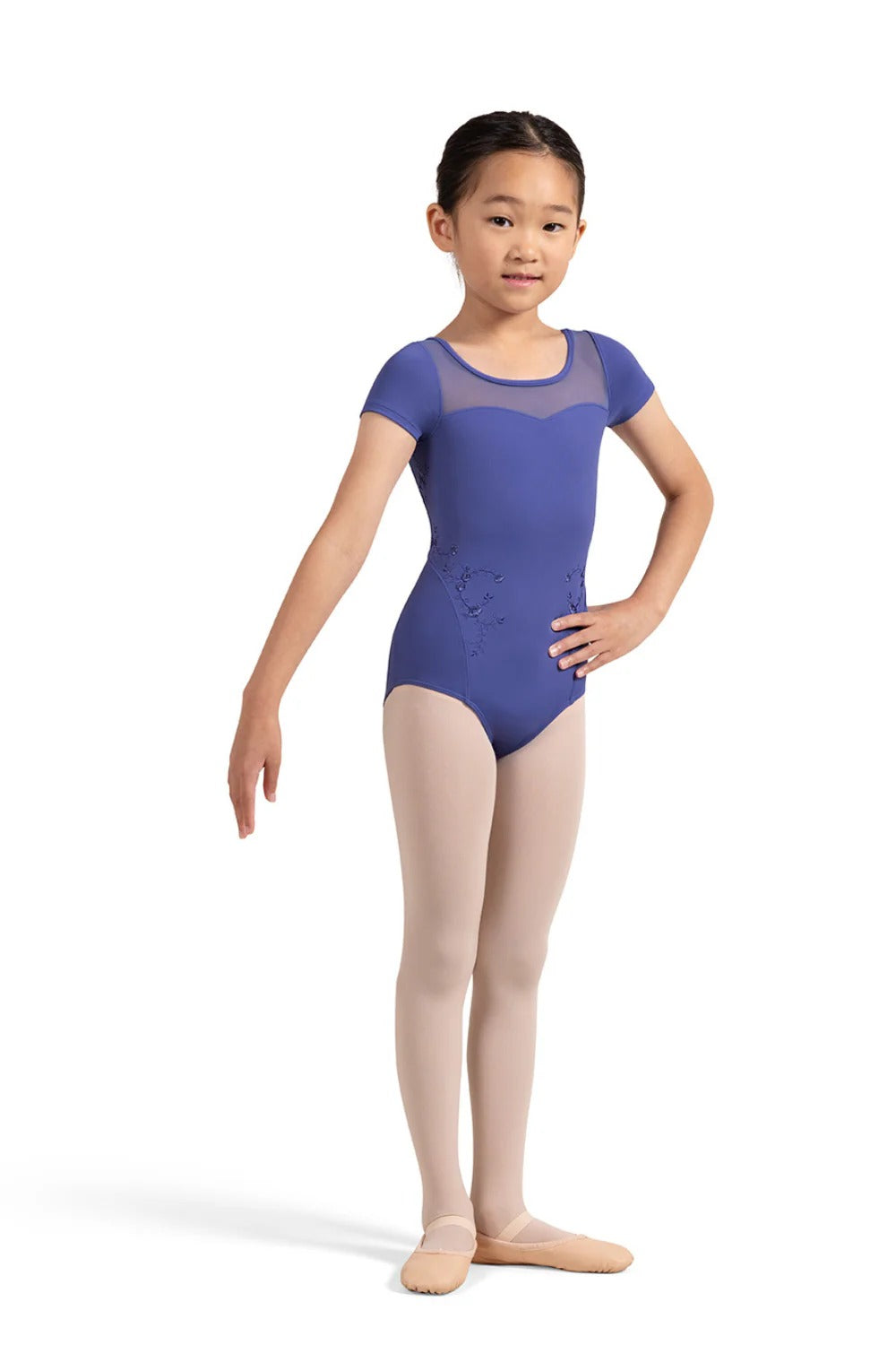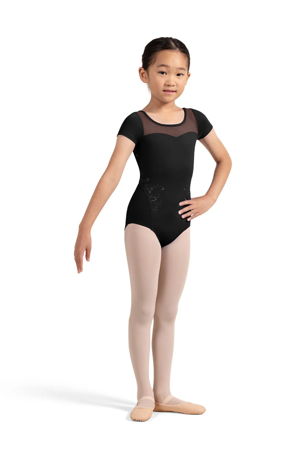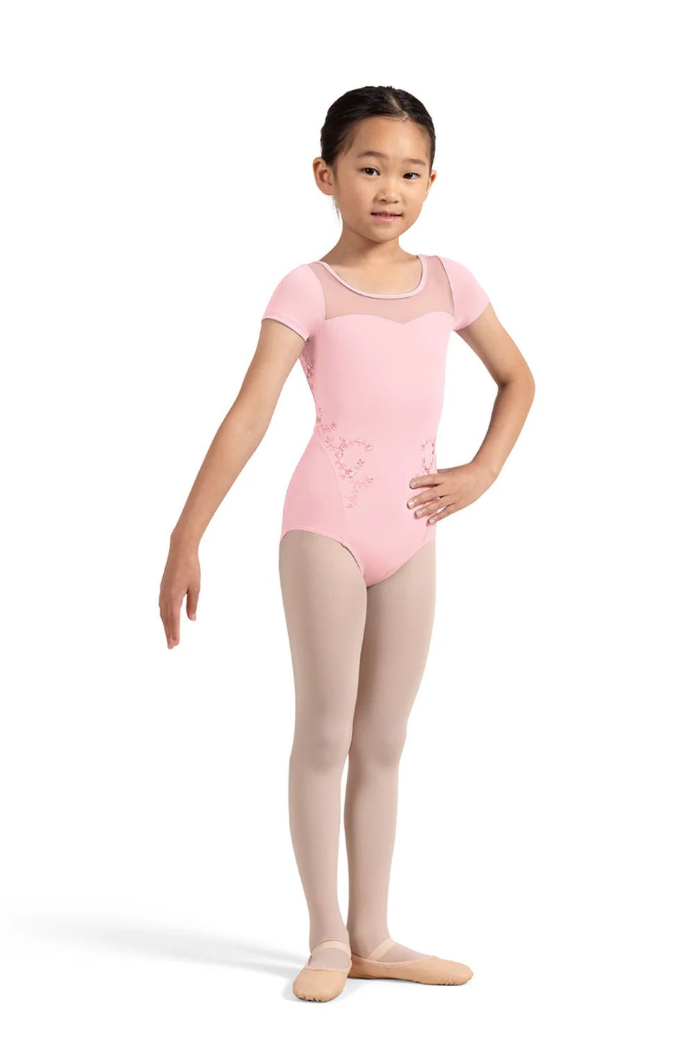Our Girls Leilani Cap Sleeve Leotard features a soft mesh scoop neck with sweetheart detail, floral embroidered body and cap sleeves. Part of our Girls Petite Fleurs Collections; let your little one bloom with every step in this enchanting collection that captures the magic of dance. Featuring delicate embroidered floral motifs, each design is created from our signature performance fabric and comes in a trio of classic tones.