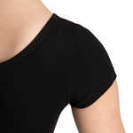 This simple silhouette is optimal for studio time, rehearsals and under joggers for an everyday look. The Short Sleeve Cotton Leotard features a classic scoop front and back. Made of a soft cotton and spandex blend that is resilient. Available array of colors to match your dancer's style.