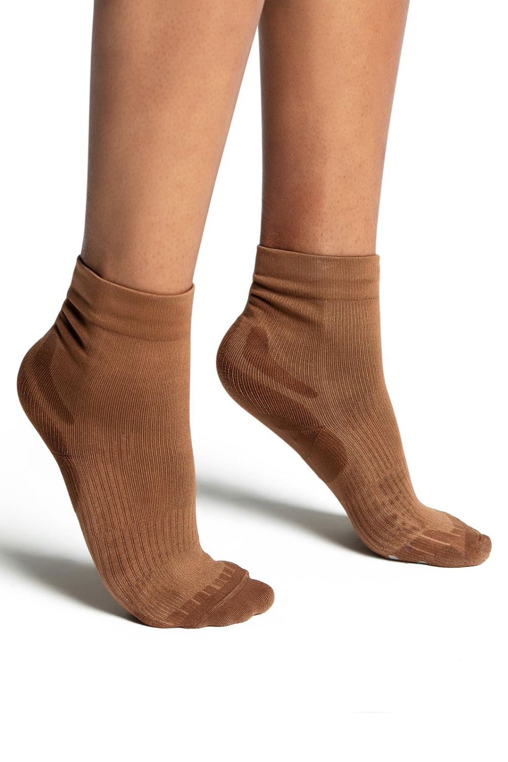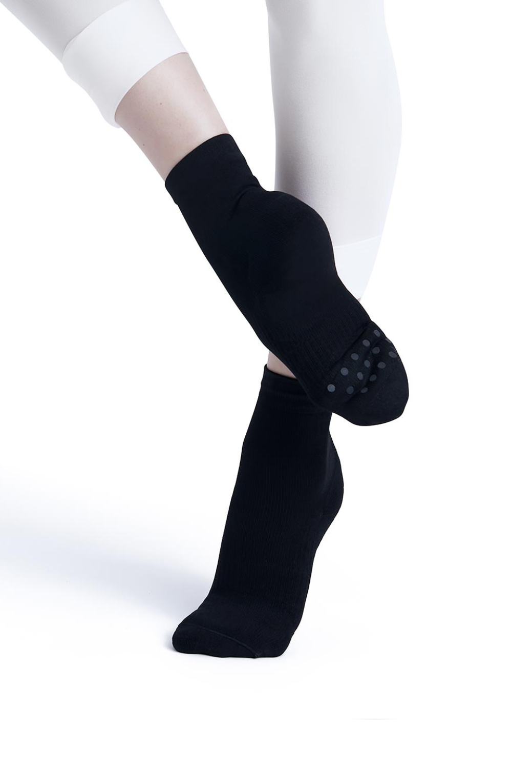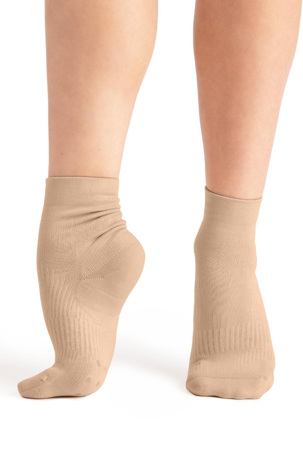 Ideal for dance, training and recovery, this ankle sock prioritizes comfort, support and compression. Strategically placed compression points within the sock reinforce and lift, while the durable cushioning absorbs shock to improve performance. Wicking yarn enhances moisture ventilation and overall breathability.