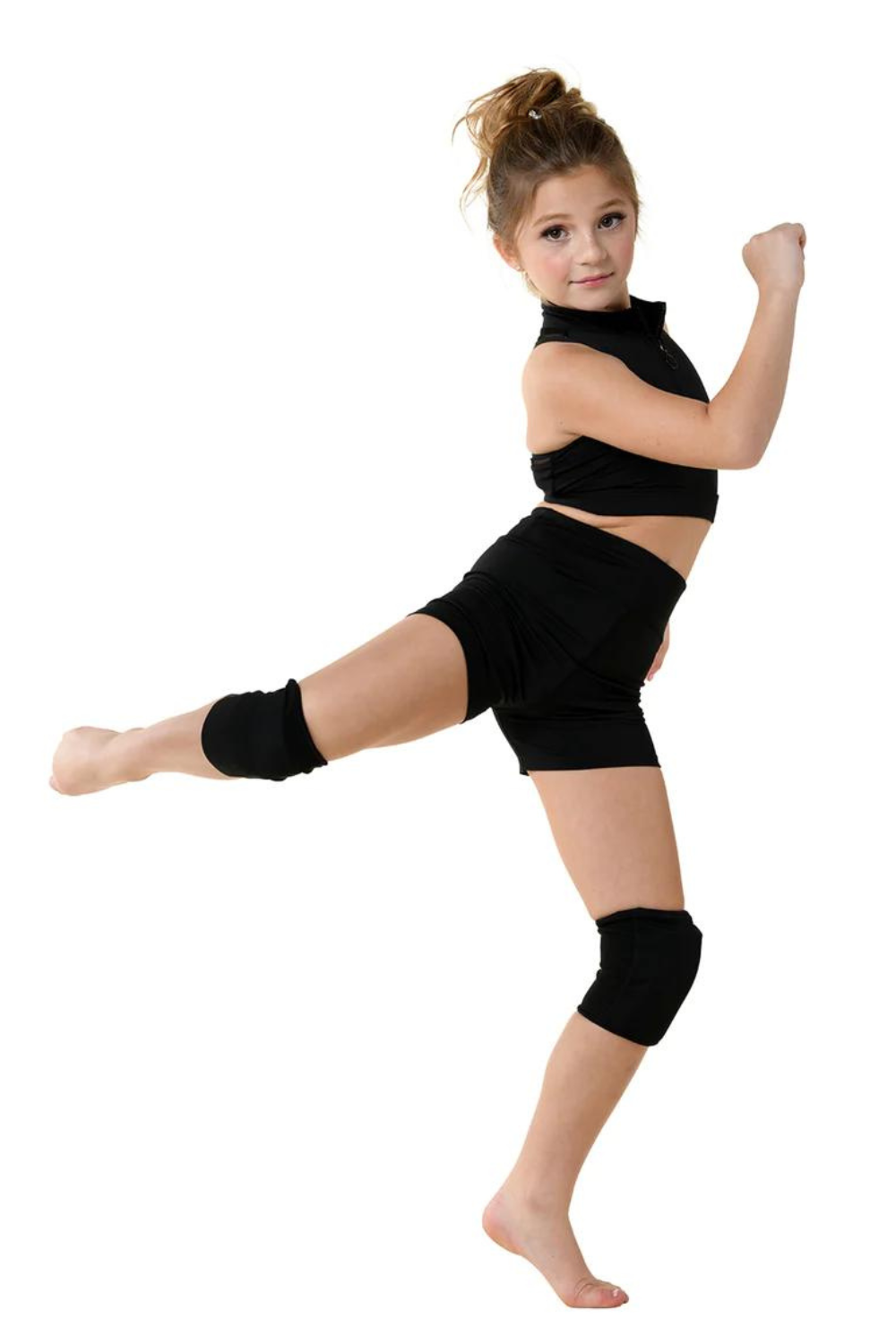 Keep your knees protected with our shock absorbing knee pads. Whether at practice or performances, you will want all the support you can get. The comfortable ribbed nylon fit slips right on and stays secure ensuring the best protection. Fabric is breathable and flexible, perfect for dance and cheer and sports like volleyball.