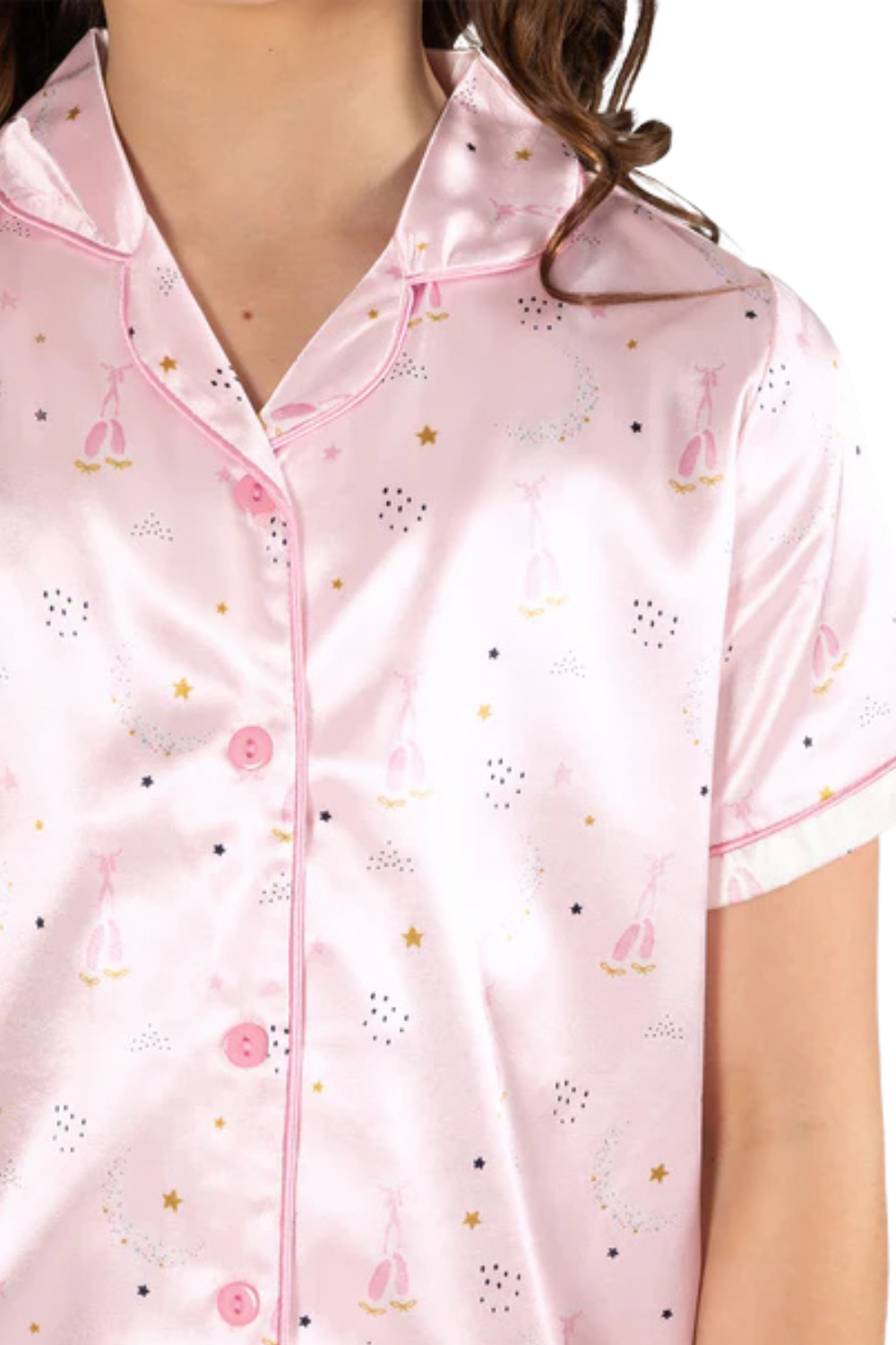 • Ballet-inspired print featuring pointe shoes, crescent moons, and twinkling stars